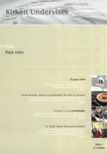 2005 Blad nr 1: 2005 Tema: Projektarbejde i kirken Læs bladet - klik her Blad nr 2: 2005 Tema: Fortælling Læs bladet - klik her Blad nr 3: 2005 Tema: Levende billeder Læs bladet - klik her Blad nr 4: 2005 Tema: Høje tider Læs bladet - klik her