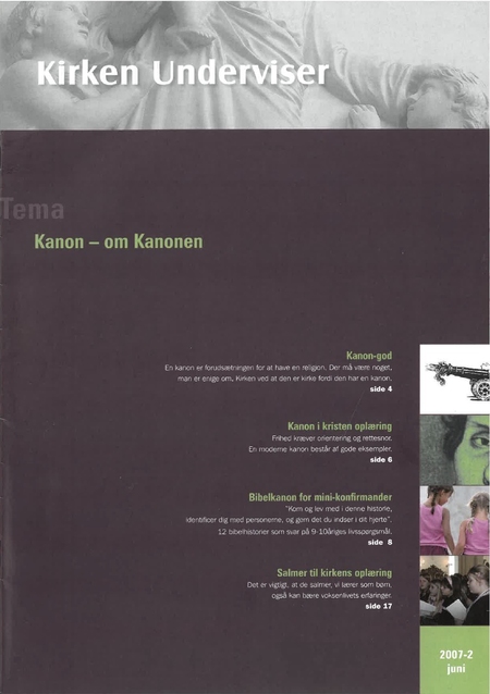 2007: Blad nr 1: 2007 Tema: Kristendomundervisning med sjæl, hjerte og mange sanser Læs bladet - klik her Blad nr 2: 2007 Tema: Kanon - om kanonen Læs bladet - klik her Blad nr 3: 2007 Tema: Jul Læs bladet - klik her Blad nr 4: 2007 Tema: Rollespil Læs bladet - klik her